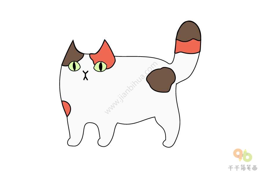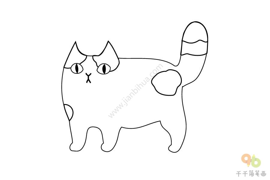 彩色斑点猫简笔画步骤图,彩色斑点猫简笔画,彩色斑点猫简笔画步骤分解,彩色斑点猫简笔画作品展示