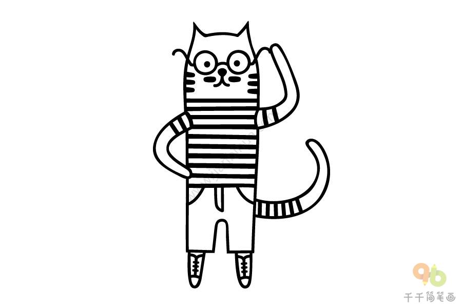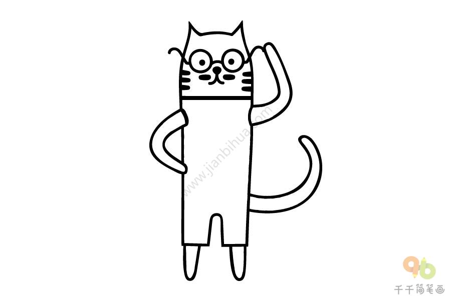 敬礼猫简笔画,敬礼猫的简笔画作品展示 ,敬礼猫简笔画作品欣赏