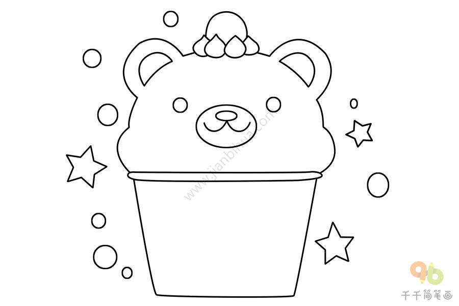蛋糕简笔画,蛋糕怎么画,蛋糕简笔画图片,小熊杯子蛋糕简笔画图片整理,小熊杯子蛋糕简笔画作品欣赏