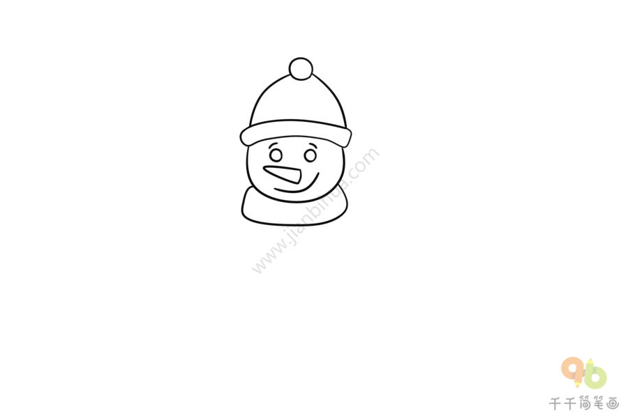 第七步:涂色,戴红帽子的雪人简笔画完成!
