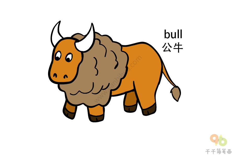 宝宝英文认知简笔画,英文认知公牛简单又好画,宝宝英文认知图片,宝宝英文认知图片大全