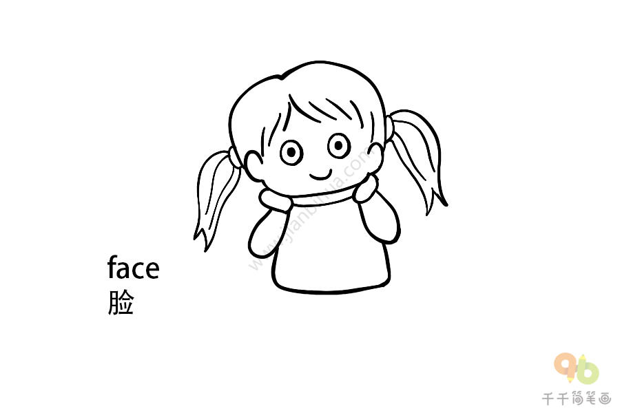 宝宝英文认知 摸脸的女孩简笔画