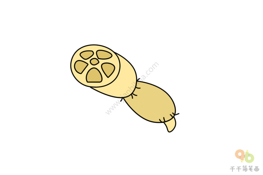 2、再画椭圆的形状连接在一起,画出莲藕的轮廓