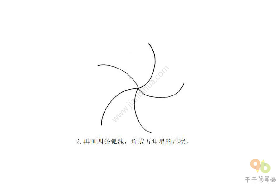 再画四条弧线,连成五角星的形状