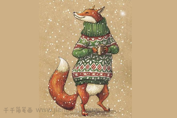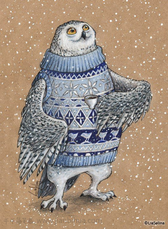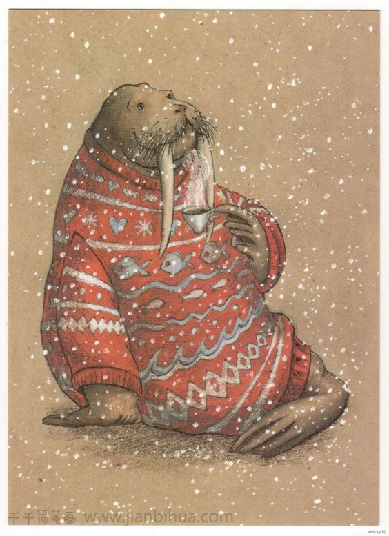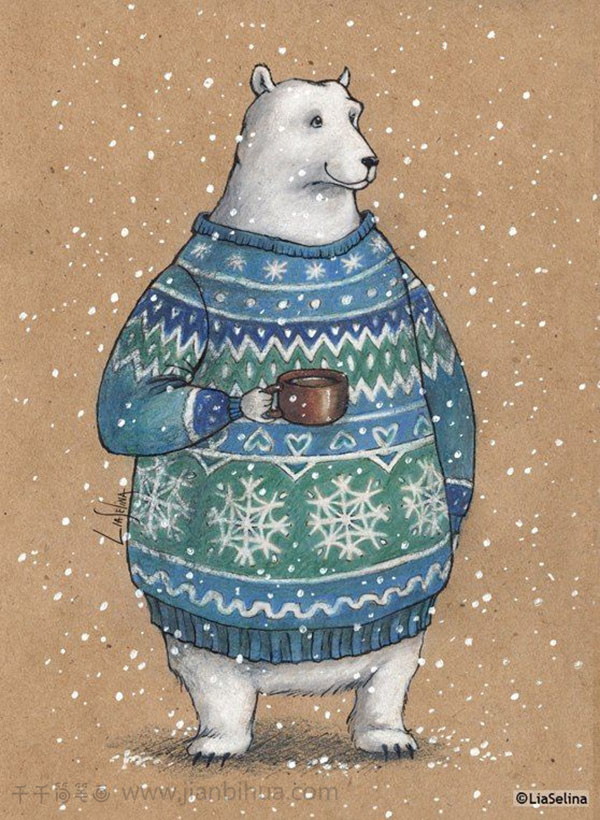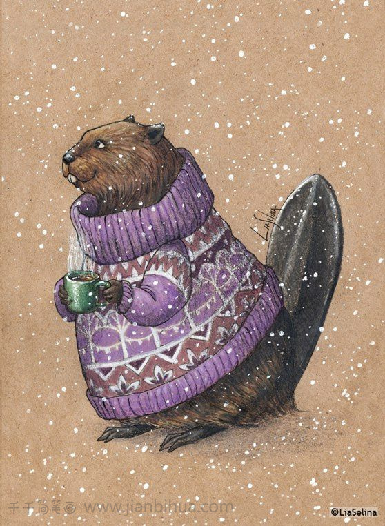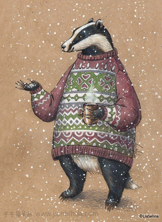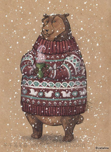 天冷了,小动物穿上了毛衣~作品来源:插画家园的微博