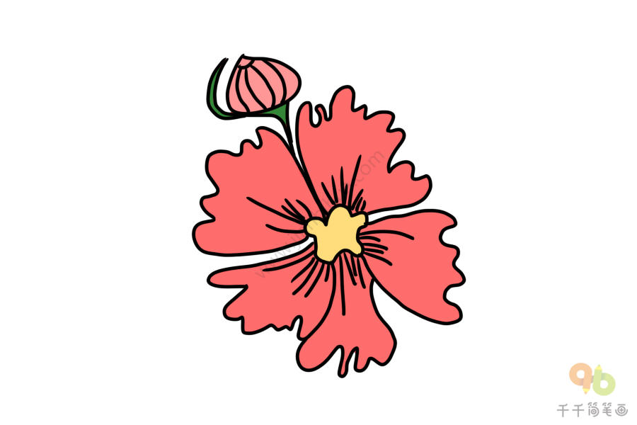红彤彤的蜀葵简笔画,成片蜀葵简笔画,蜀葵花的简单画法,花朵简笔画简单又好看,花朵简笔画图片大全