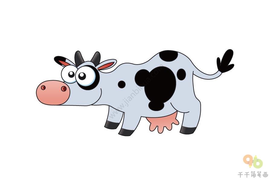 呆萌的奶牛简笔画步骤图