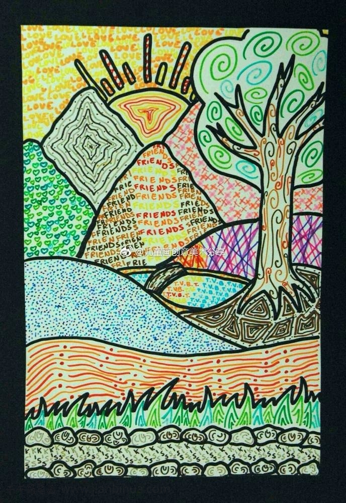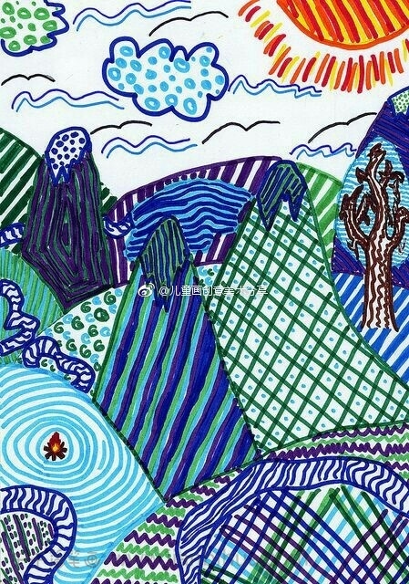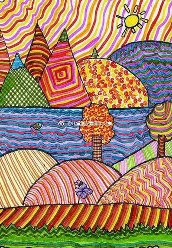 丰富多彩的线素材 作品来源:儿童画创意美术分享的微博