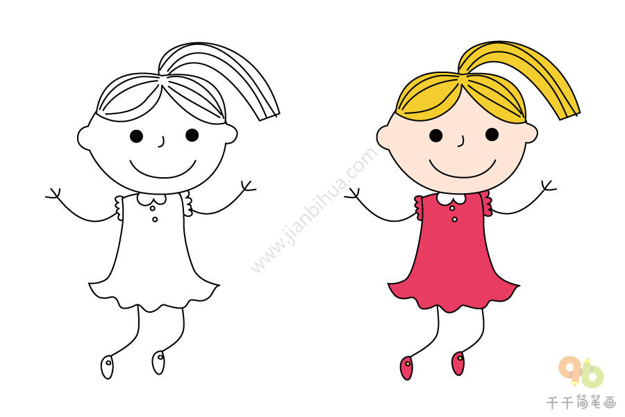梳着马尾辫的小女孩简笔画