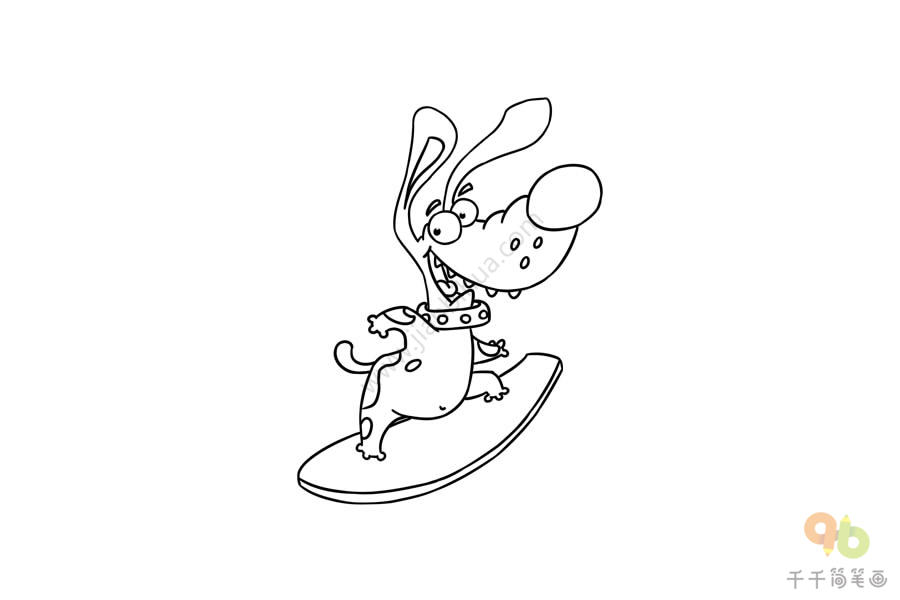 小狗快乐的冲浪,享受美好的时光,非常简单的简笔画,快来画一画吧~