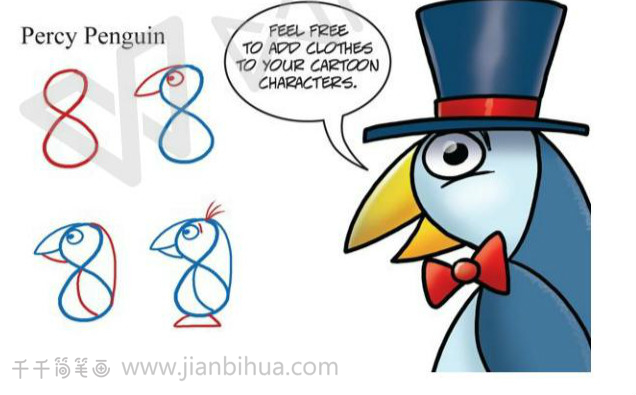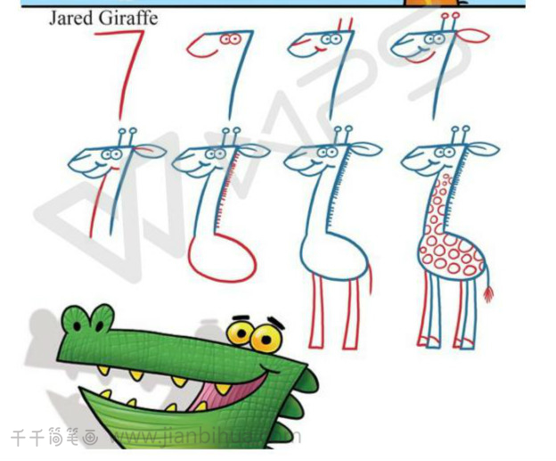 创意简笔画:用数字画出企鹅狮子熊长颈鹿等动物教程