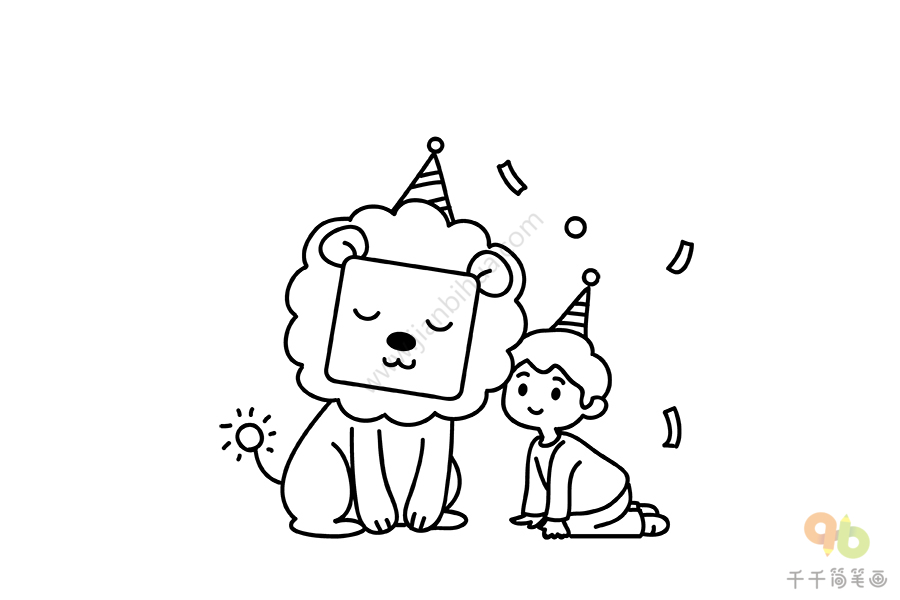 第五步:涂上颜色。男孩简笔画,儿童节简笔画,狮子简笔画,节日简笔画大全