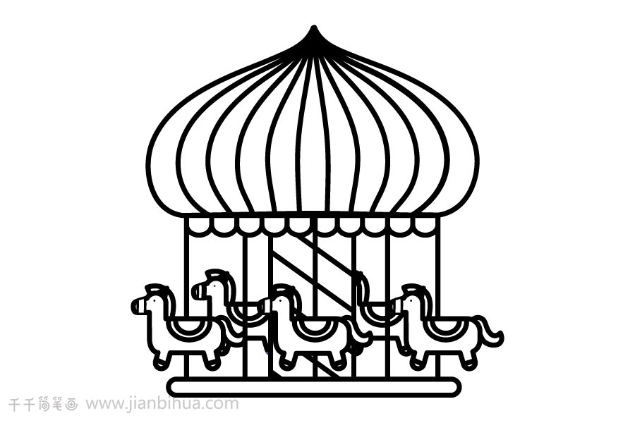 旋转木马简笔画,旋转木马怎么画,手账素材简笔画,创意手账素材简笔画,简单手账素材简笔画