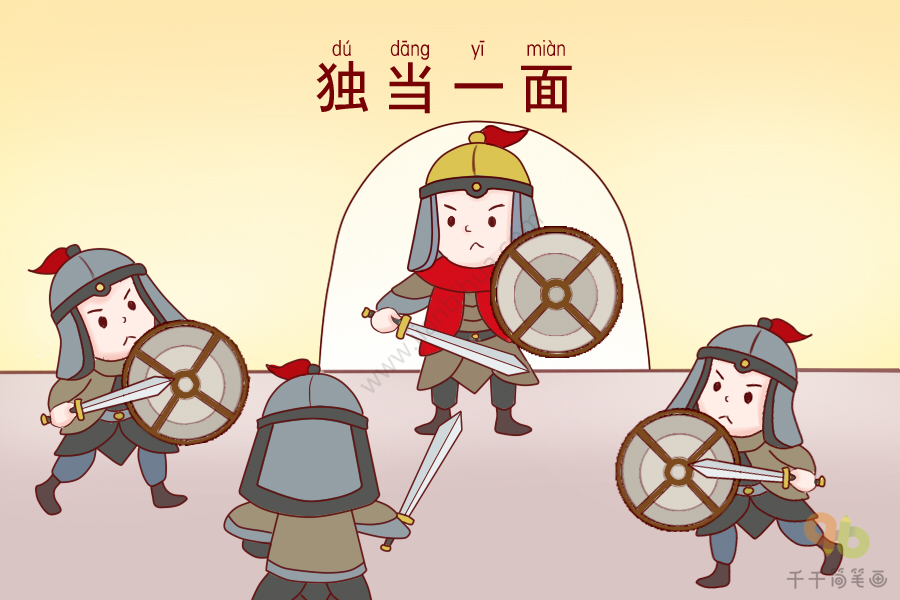 成语大全 独当一面简笔画,独当一面简笔画,成语故事简笔画图片大全,成语简笔画图片,四字成语简笔画