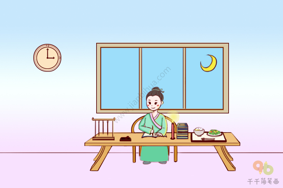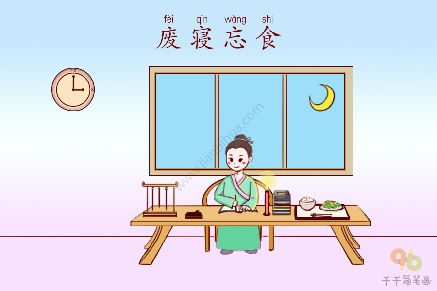 废寝忘食简笔画,成语废寝忘食简笔画,废寝忘食简笔画图片,成语简笔画大全