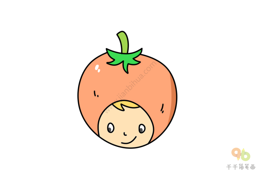 一步一步教你画橘子头小孩简笔画