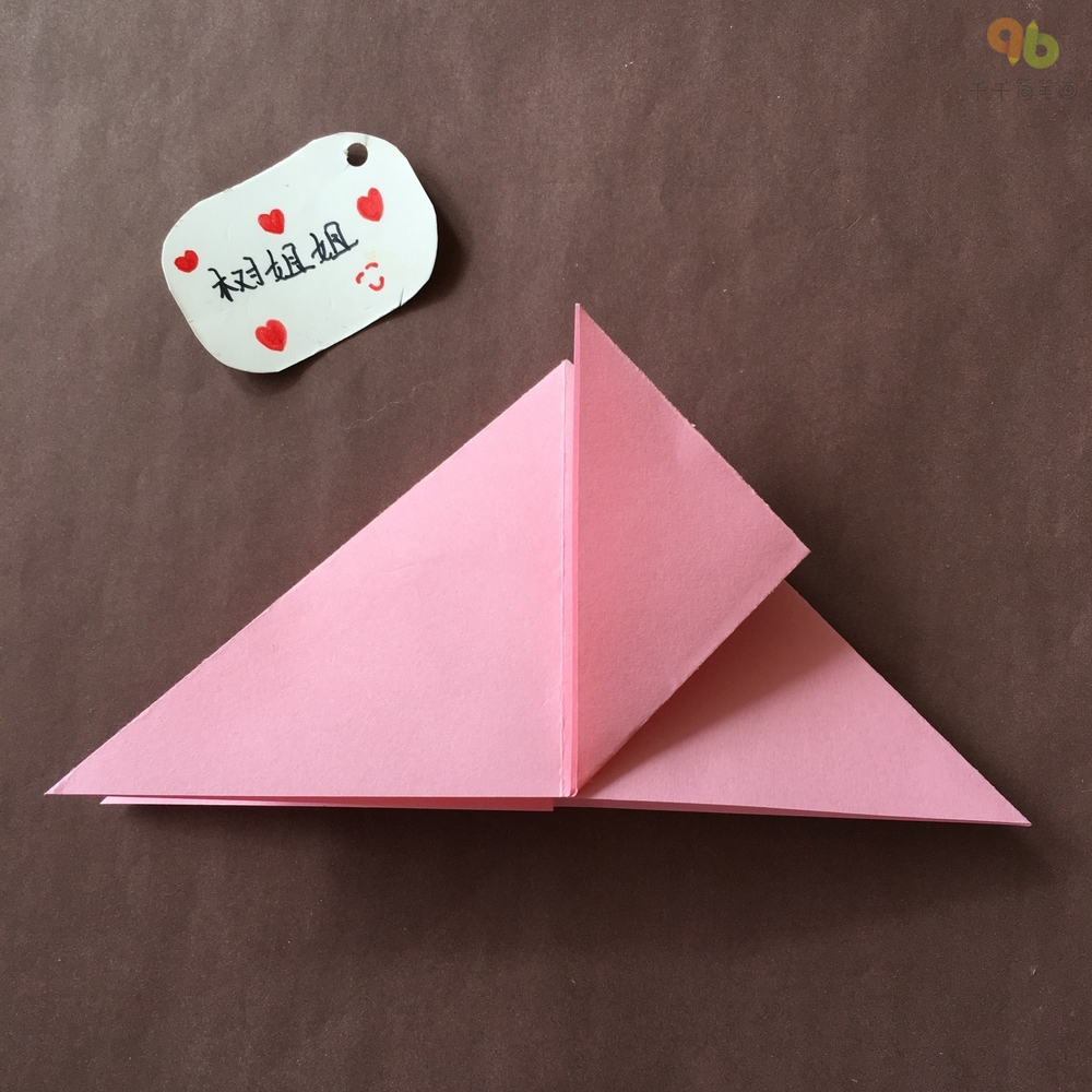 图9接着将左右两边的折2个梯形打开,底部的2个尖角分别向上折起压平,另外一边也是同样的折法,如图9所示: