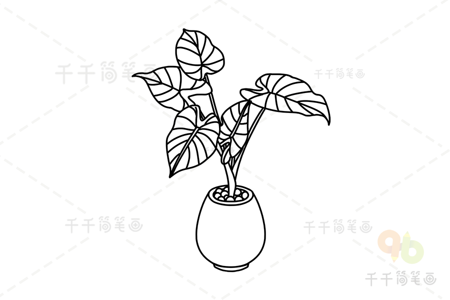 滴水观音盆栽简笔画,绿色盆栽简笔画怎么画,植物盆景简笔画,滴水观音的简笔画图片,滴水观音简笔画怎么画