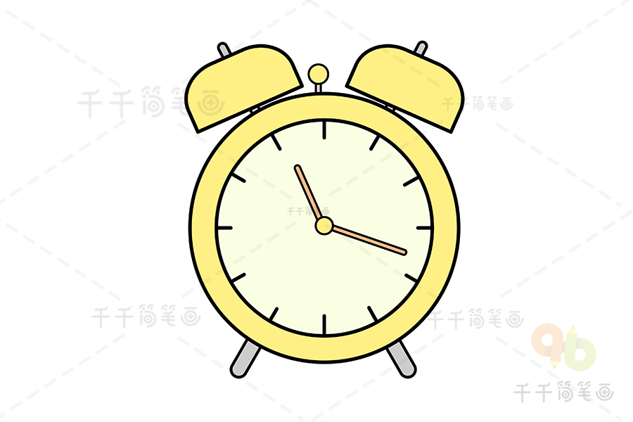 第五步:涂上颜色,闹钟简笔画就完成啦!