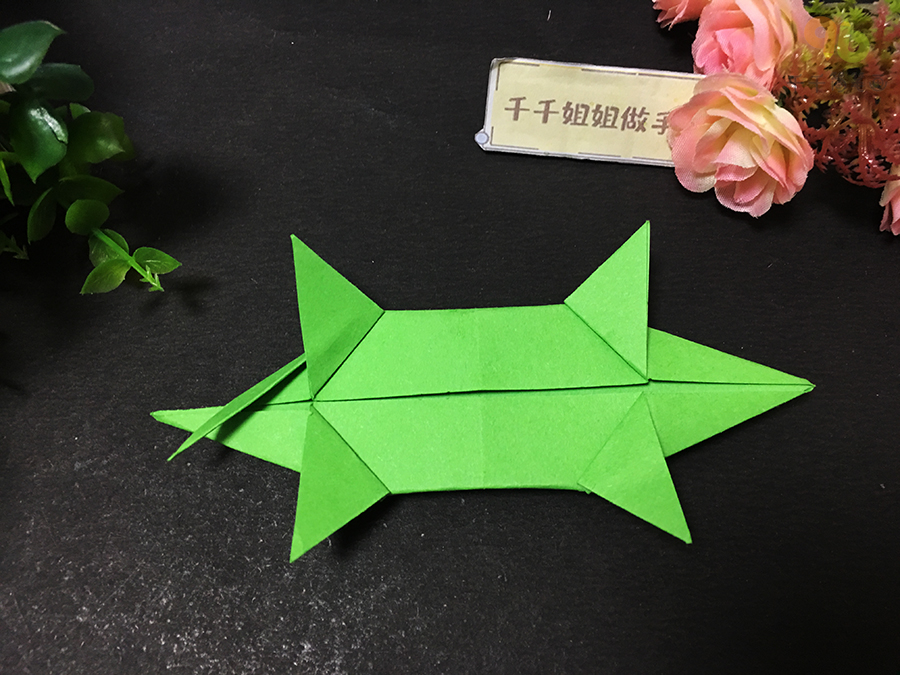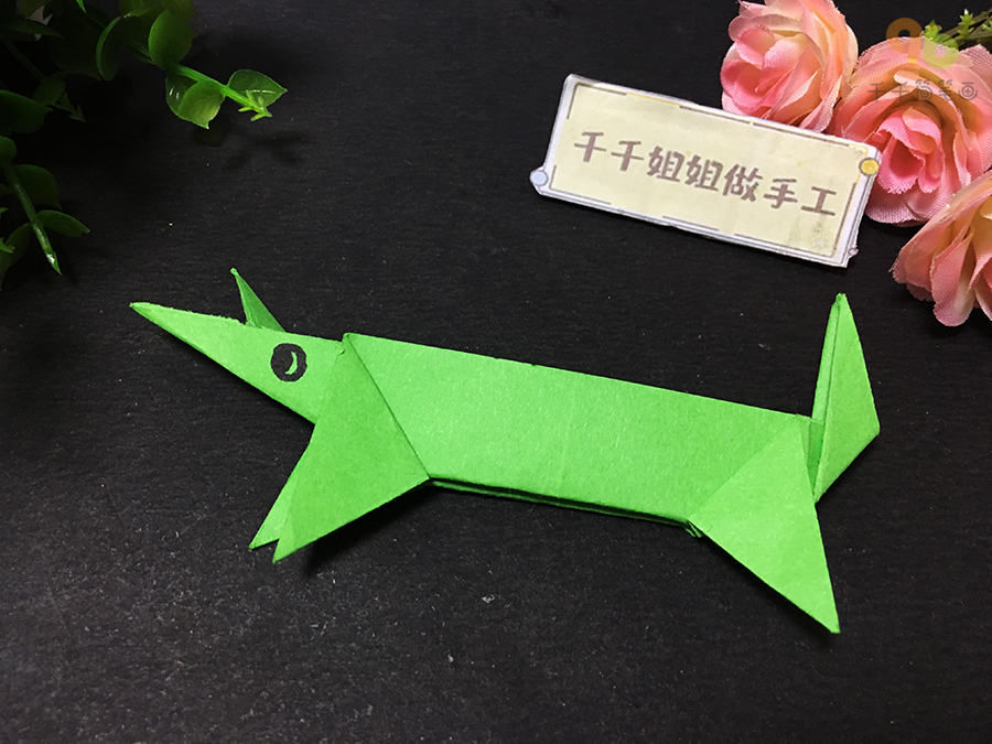 第十三步:画出眼睛,鳄鱼折纸就完成了!