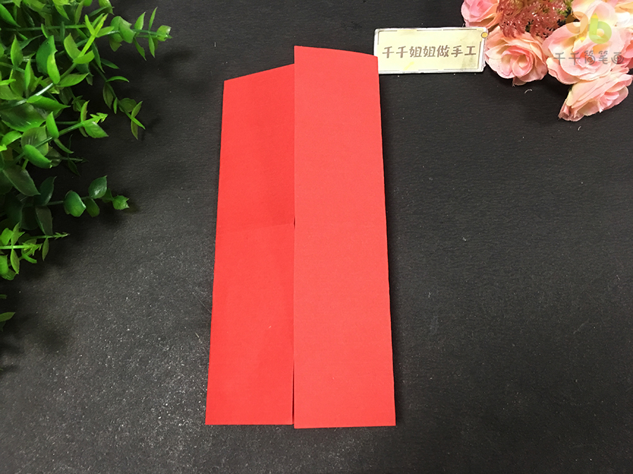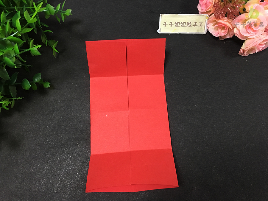 第三步:将折纸上下两端沿着中线折叠后打开,折出折痕