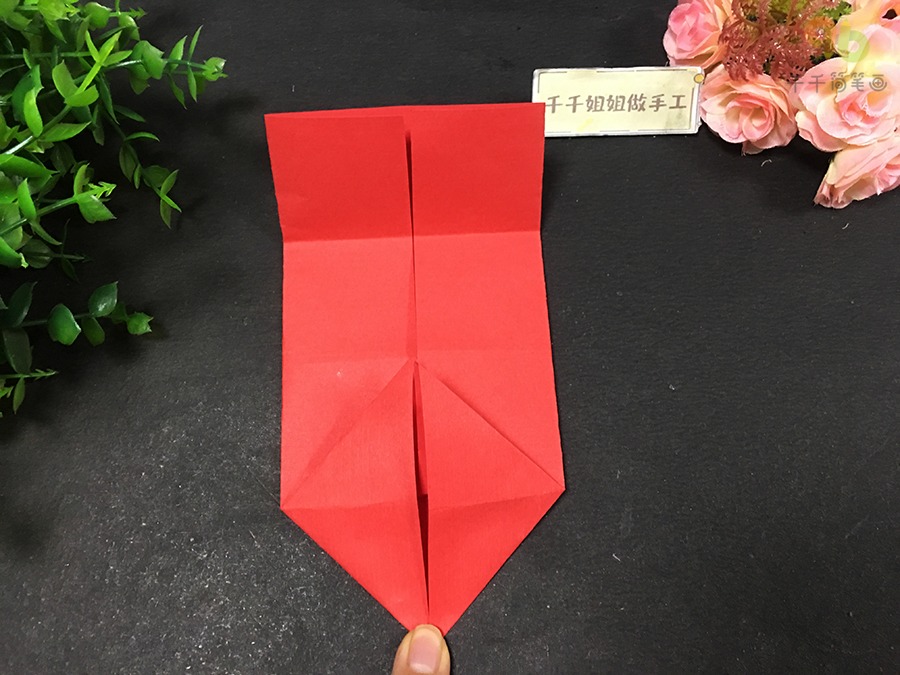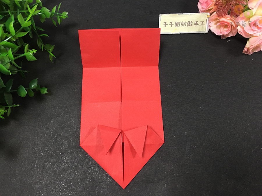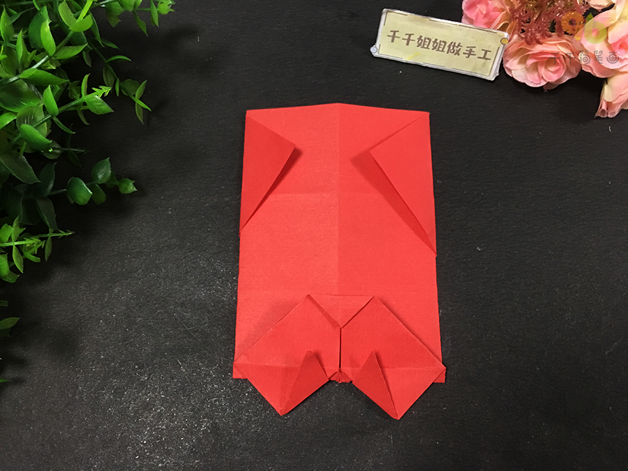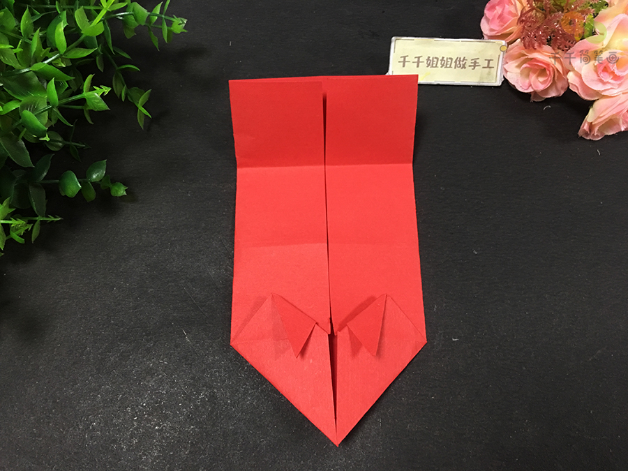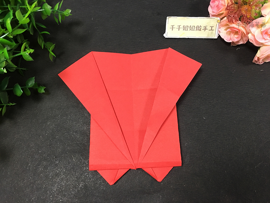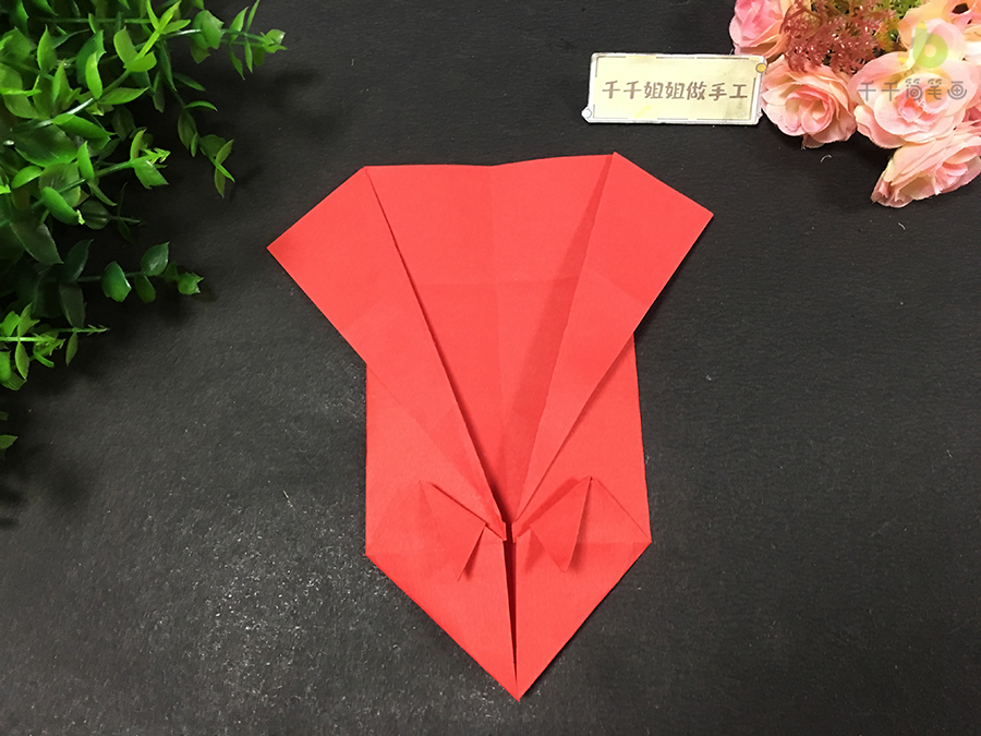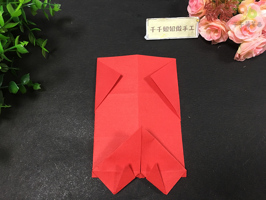 第十一步:将左右两端的折纸向下折叠,如图所示