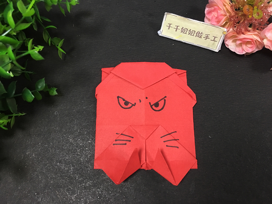 第十四步:将狼人的表情画出来,万圣节狼人折纸就完成啦!