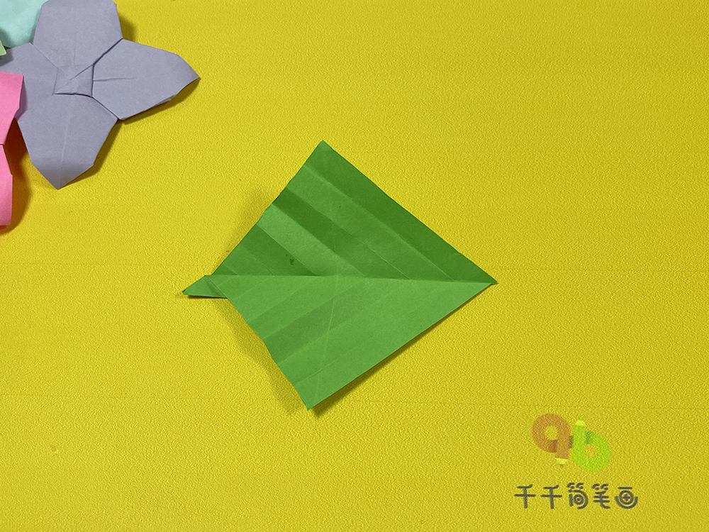 第十七步:下面来折叶子的部分,将折纸对角折叠