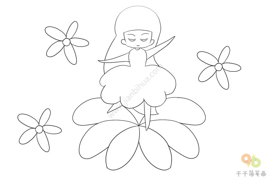 花间起舞的小女孩简笔画步骤图