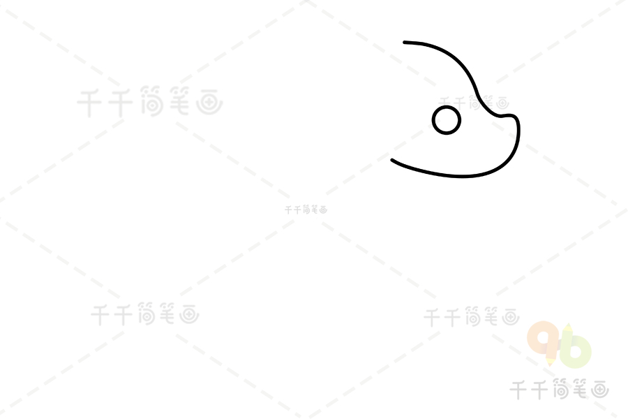 第三步:沿着头部画出它的背部线条和后边的两条腿。