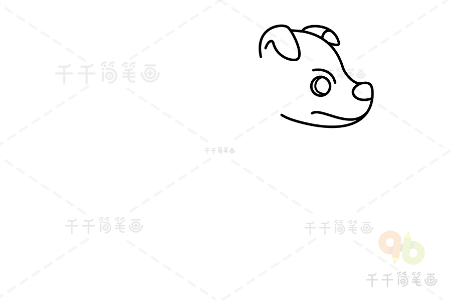 第一步:先描绘出杰克罗素梗的头部轮廓,并且画出它的眼睛。