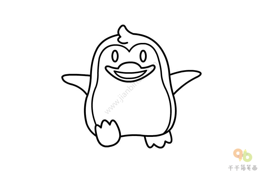 第三步:画出企鹅一对翅膀和一对脚跟鸭子的脚有些像哦