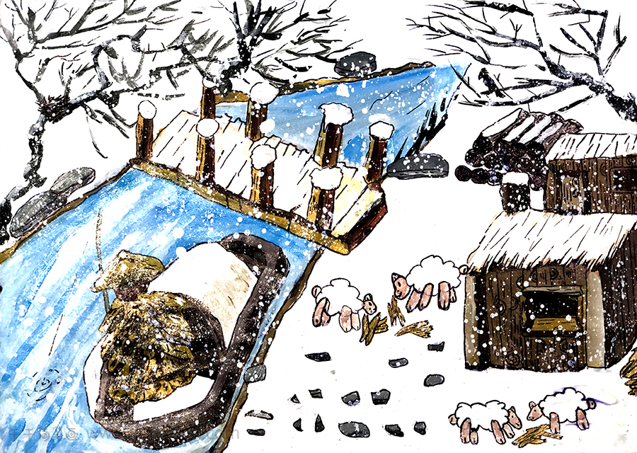 儿童画金奖作品《逢雪宿芙蓉山主人》_儿童画图片大全_...