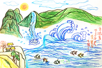 儿童画金奖作品《望庐山瀑布》 彩色儿童画