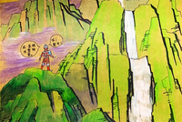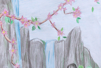 儿童画银奖作品《望庐山瀑布》彩色儿童画