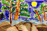 儿童画银奖作品《松·月》儿童绘画作品