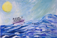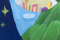 儿童画优秀奖作品《早发白帝城》彩色儿童画