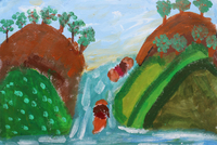 儿童画金奖作品《飞瀑》精美儿童画图片